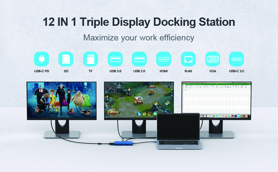 12 in 1 Triple Display USB C Hub Adapter