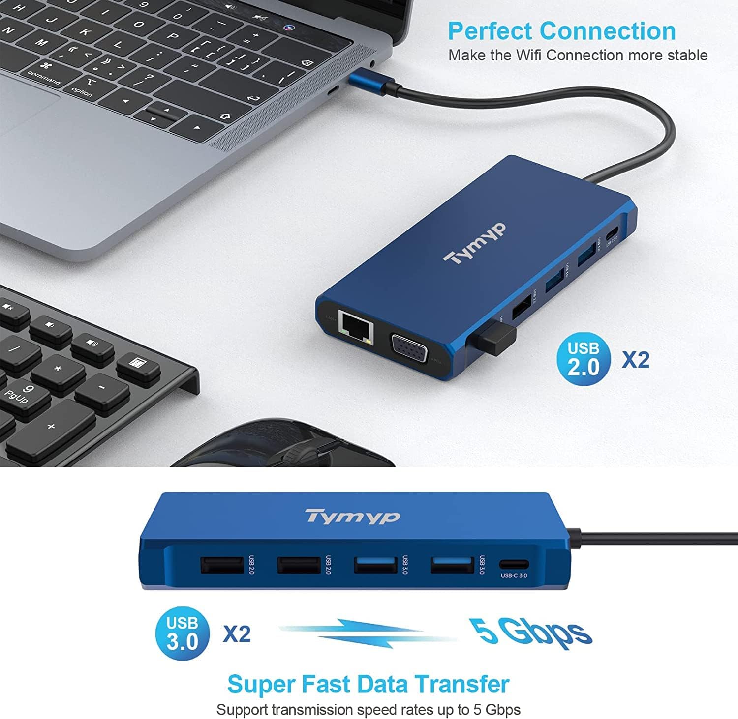 This USB C Hub Ethernet port supports 10/100 / 1000Mbps BASE-T LAN networks, you can enjoy the ultra-fast Gigabit Ethernet speeds and reliability of a wired connection right away.