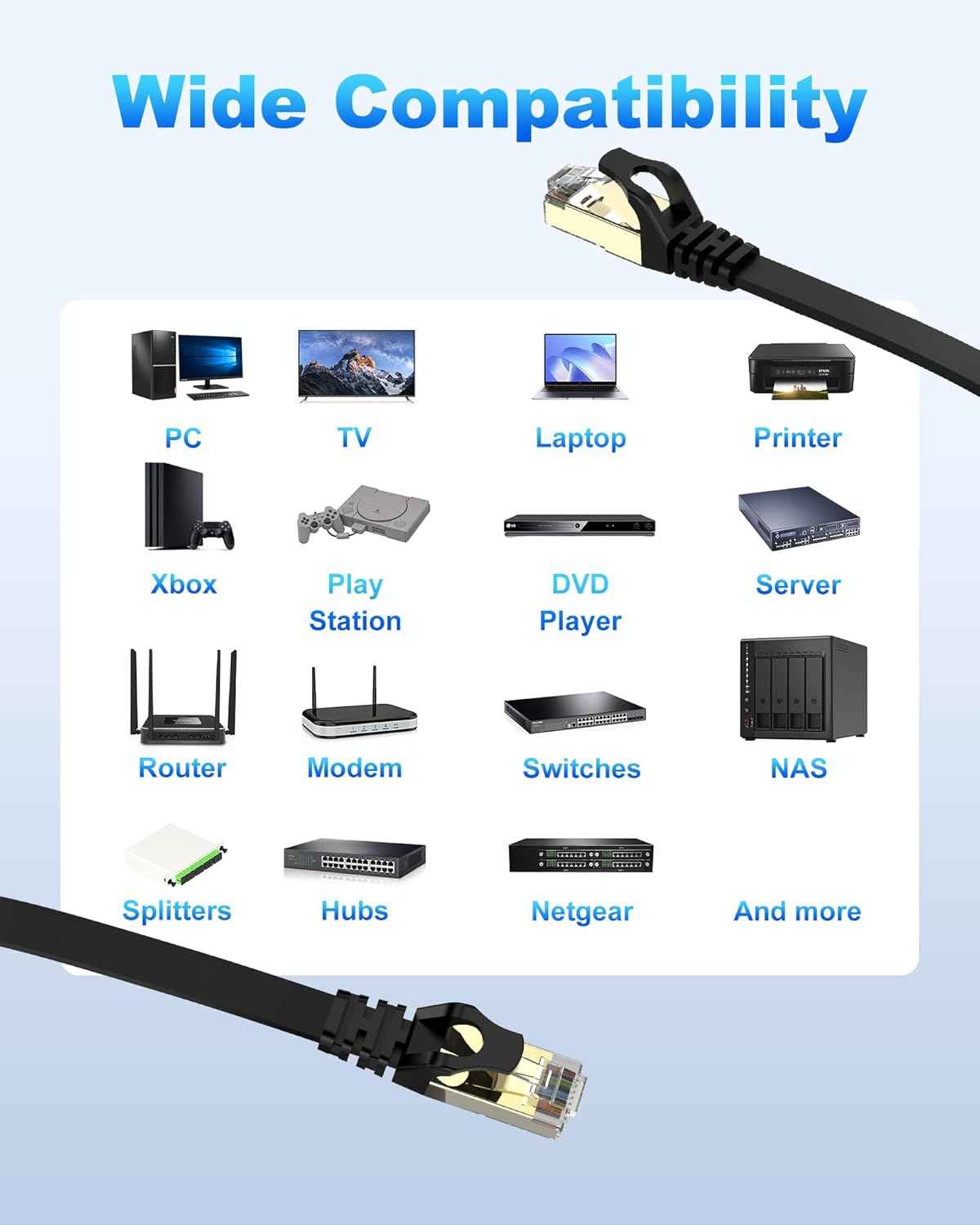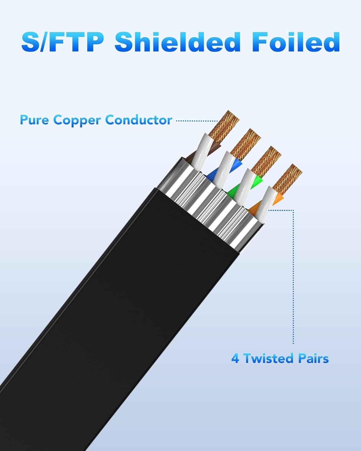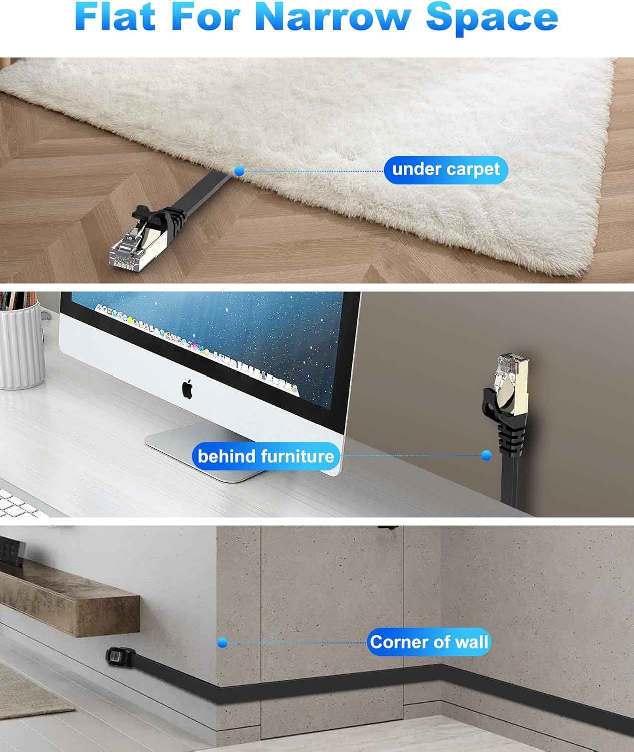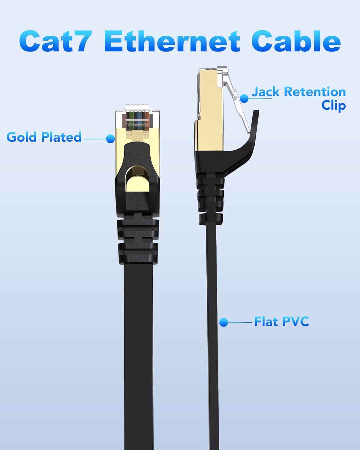 CAT 7 Network Cable 1m Ethernet Cable RJ45 High Speed LAN Cable - Black 2 pack