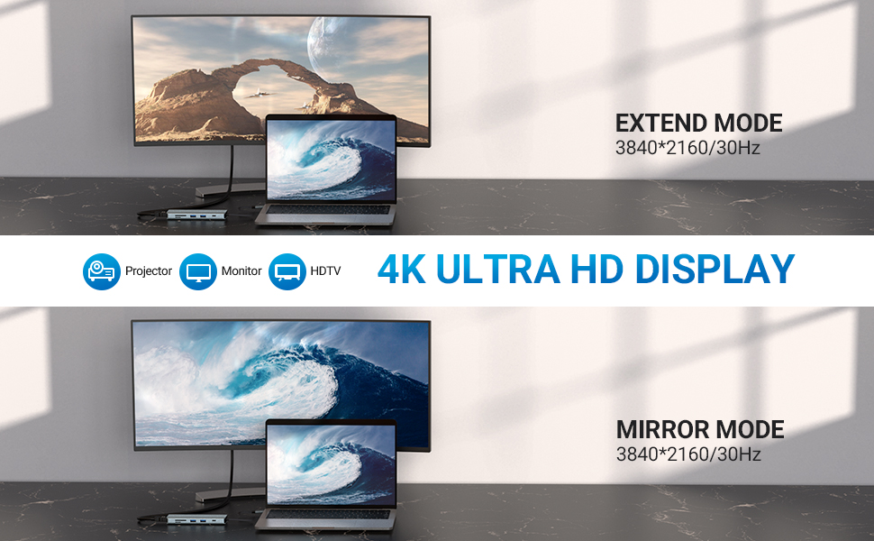 This YLSCI USB C HUB can be perfectly compatible with Windows and macOS and can be used directly without installing additional drivers. Perfect support for 3840x2160 30Hz (Note: it can be backward compatible with 2560x1440 60Hz, 1920x1080 60Hz).