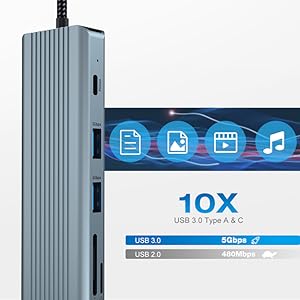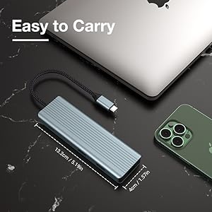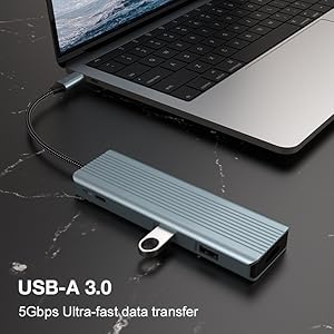 - Plug and Play - Strong Cooling - The USB C Hub can be used directly without drivers, programs or software. The company's high-level intelligent chip and various protection systems to prevent over-current, over-voltage, short-circuit and high temperature ensure the safety of file transmission and storage.