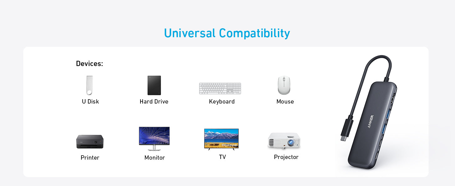 Turn one of your device's USB-C ports into 5 ports, allowing you to transfer data in seconds, stream media in unrivalled clarity, and enjoy high-speed pass-through charging. 4K External Display, Connect to the HDMI port to mirror or extend your display to an external monitor at up to 4K@30Hz, making it easier to multitask across several apps.