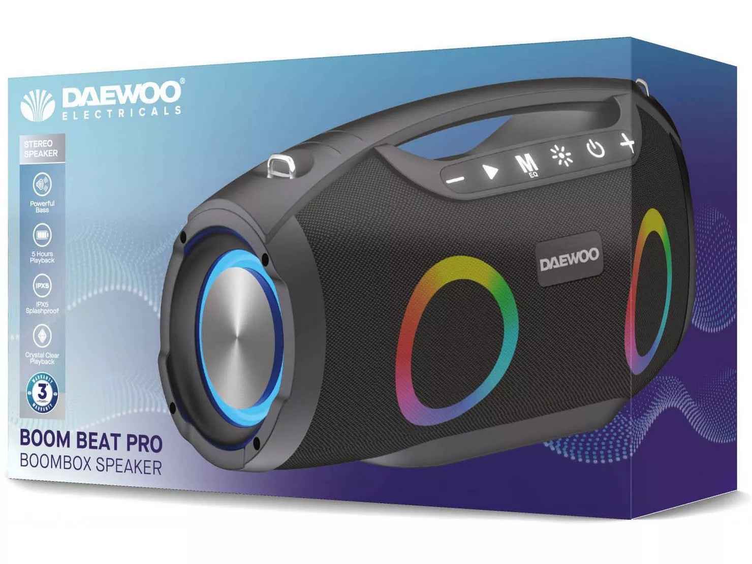 Add extra flair to your listening experience with colour-changing lights that create a fun, vibrant atmosphere. TWS pairing lets you link two Boom Beat Pro speakers for true stereo sound. With multiple playback options - including Bluetooth, AUX input, USB memory stick, and Micro SD card support - you can play your favourite tunes from all your devices, no matter the format!