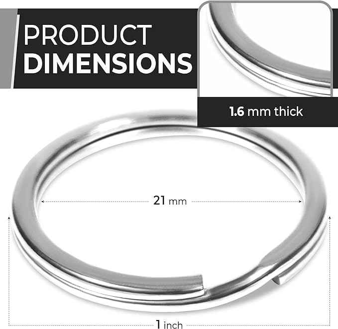 Keep your keys and accessories secure with these heavy-duty split key rings. Crafted from high-quality nickel-plated steel, these rings are built to last and resist rust, bending, or breaking. With a convenient 1-inch (25mm) diameter, they are perfect for house keys, car keys, fobs, ID tags, lanyards, and DIY crafts.