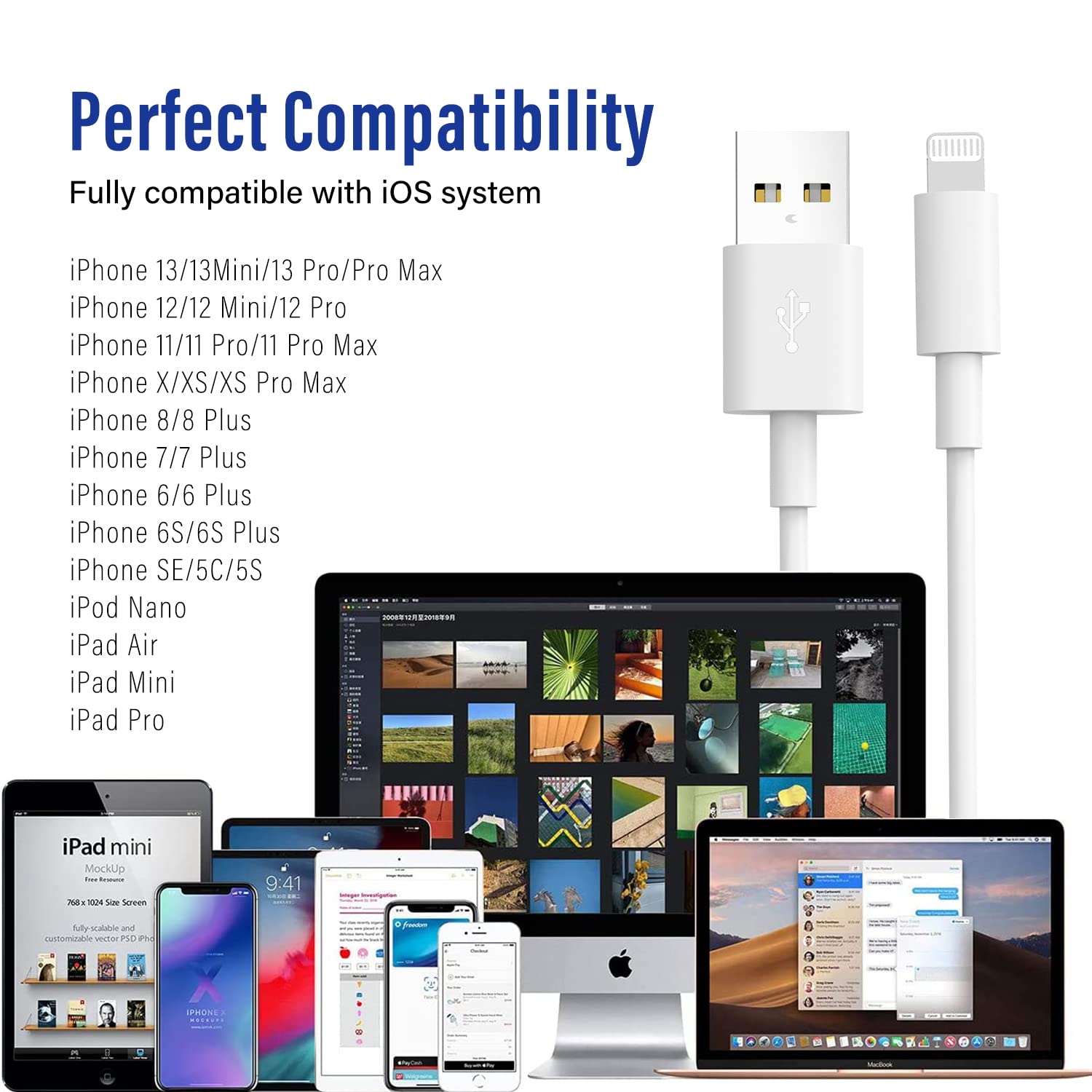 - iPhone MFi Certified Lightning Cable: Our Lightning Cables are MFi certified, each cable contains an authorized chip, and uses the original 8-pin connector to ensure 100% compatibility with iPhone, iPad, iPod, and can output safe and effective current to the device.