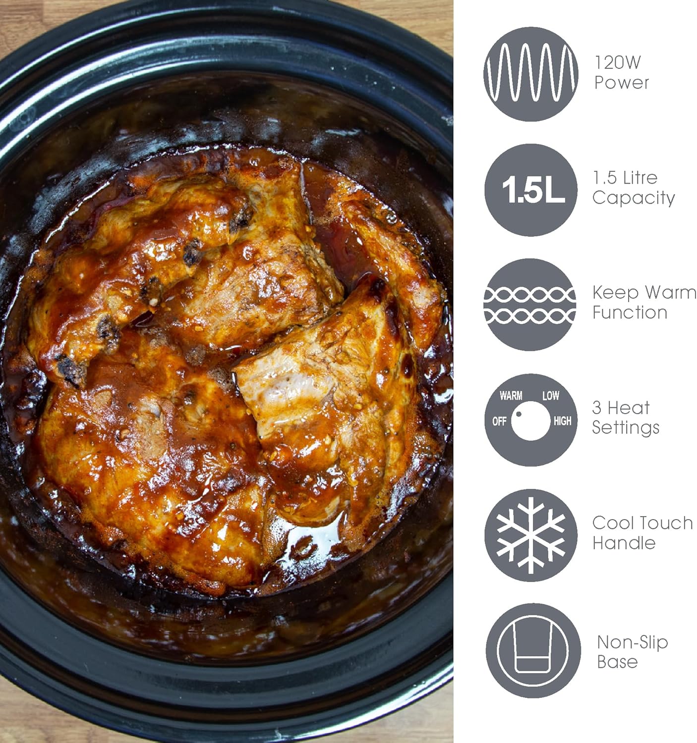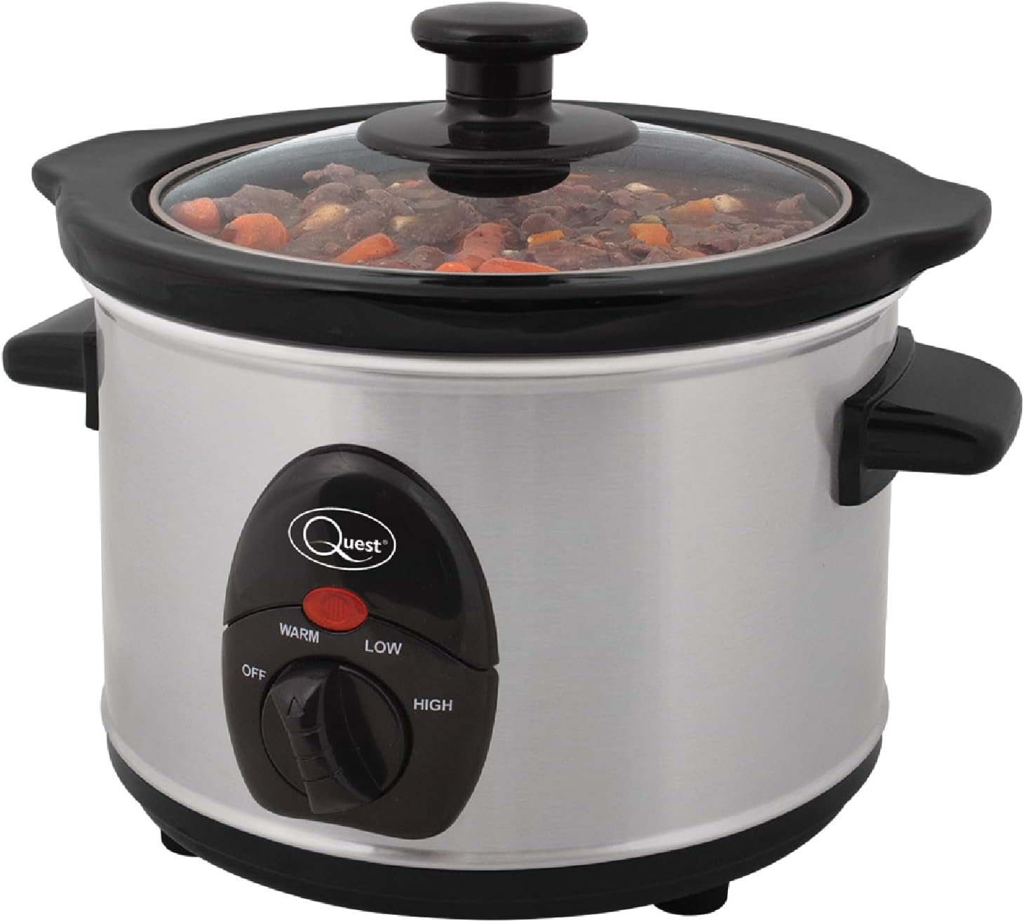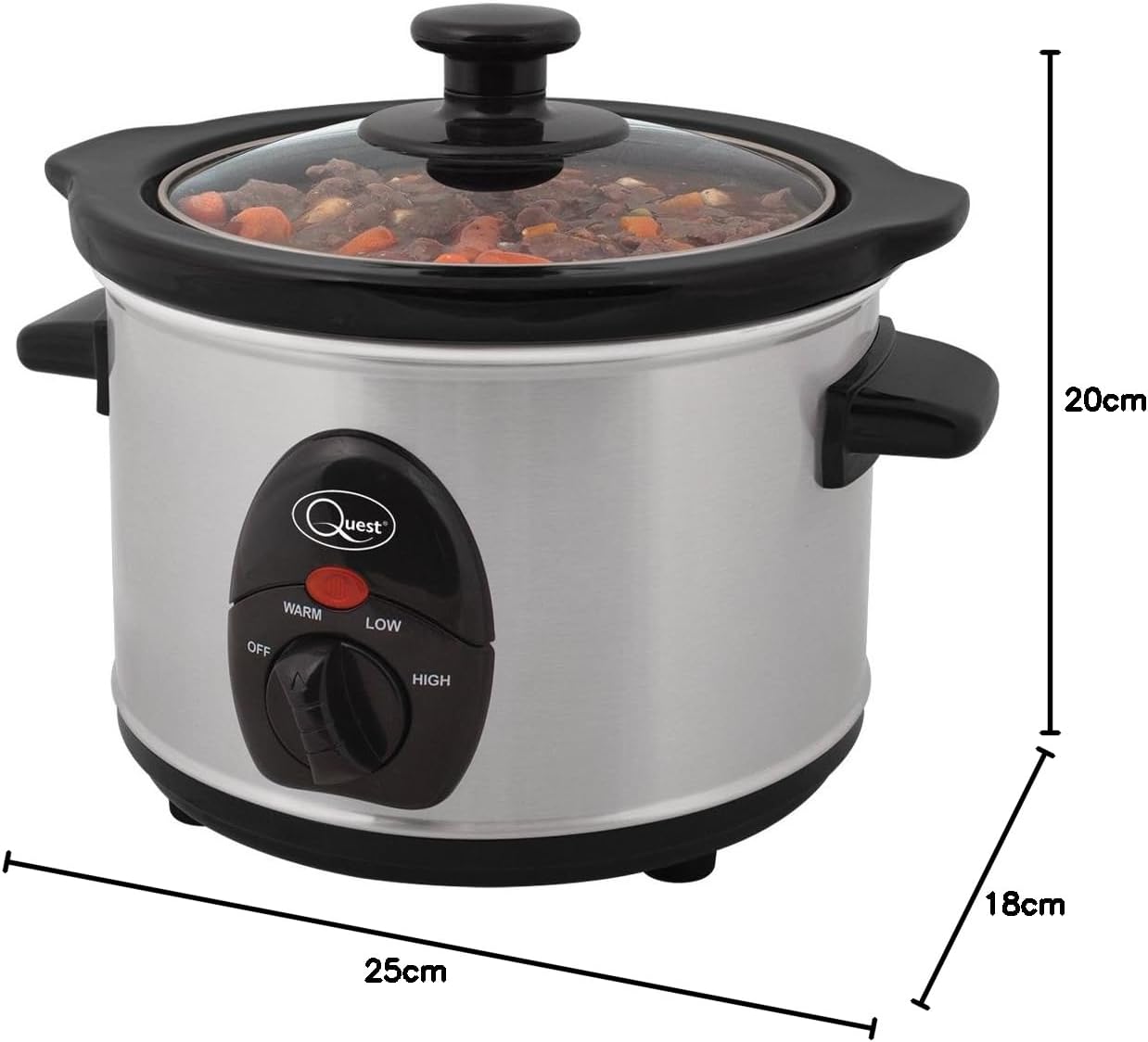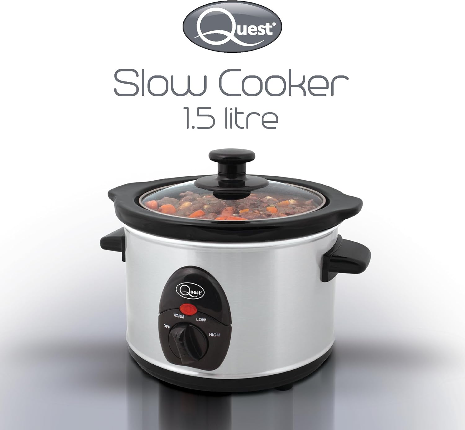 Quest 1.5 Litre Compact Slow Cooker Stainless Steel 120W 3 Temperature Settings