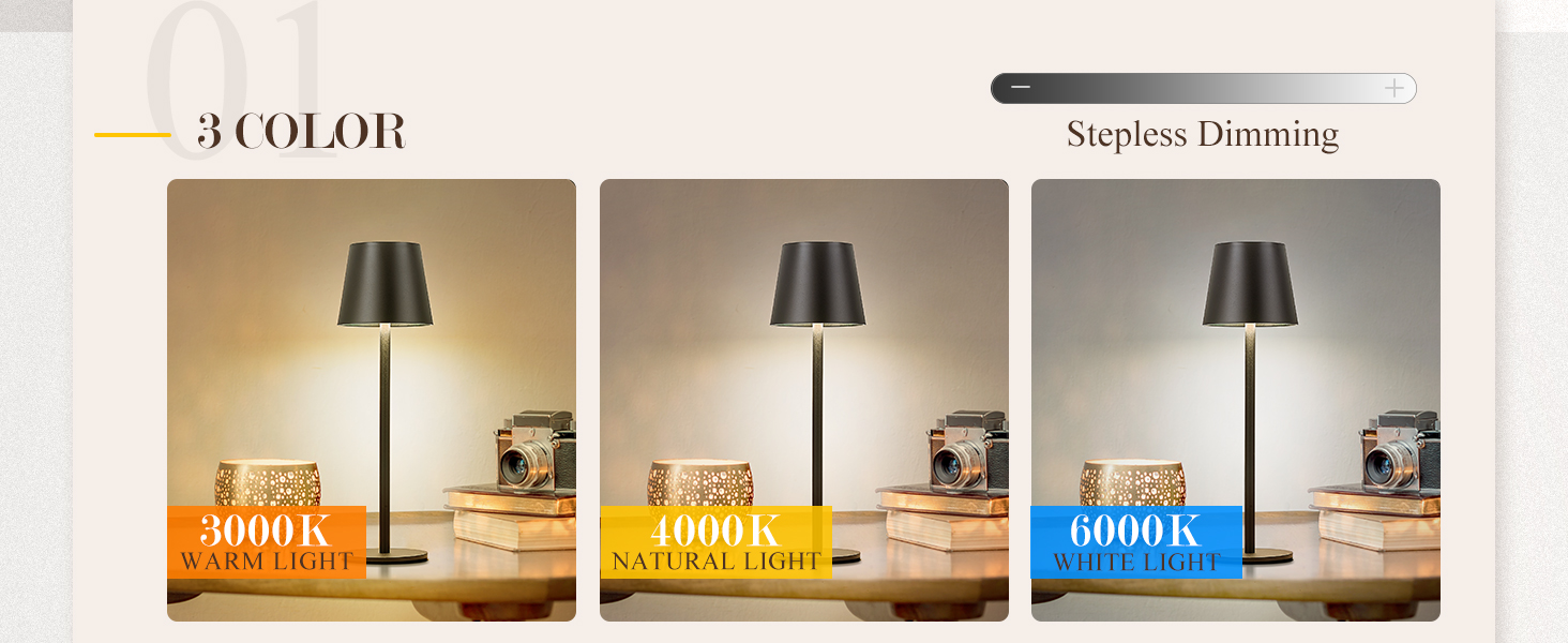 Cordless LED Table Lamp Rechargeable Desk Light IP54 Touch Dimmable White 2 Pack