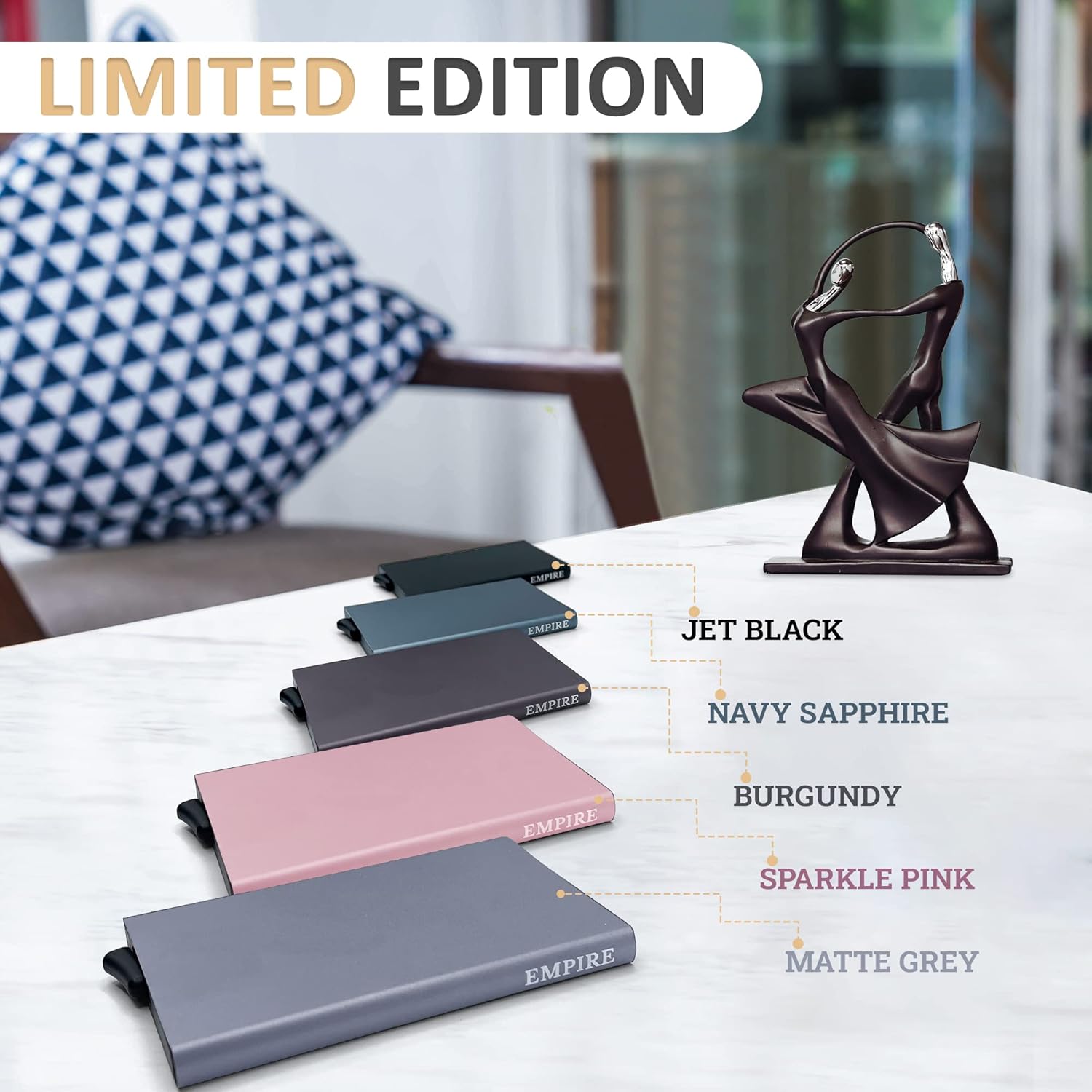 - 💎 Luxury Design: Crafted in a striking Navy Sapphire colour, it radiates sophistication while keeping your cards organized with a slide ejector mechanism.